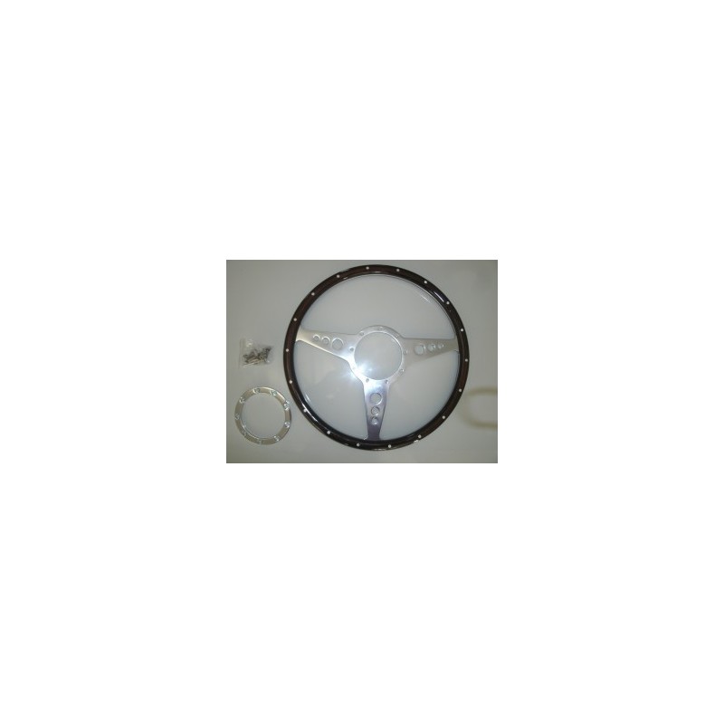 Volant bois clouté diamètre 14″.120€. Disponible aussi en 13″ et 15″.